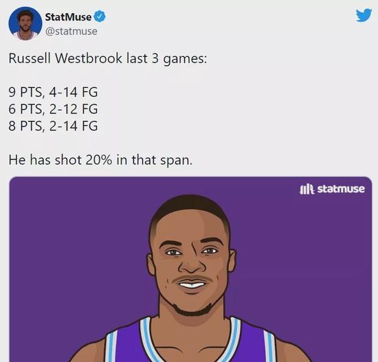 这种死猪不怕开水烫的态度其实就是:爱看看,不看滚。所以这么多年了,威斯布鲁克在技术上毫无长进也是顺理成章的,据美国网友统计,本赛季他已经19次跳投打到计时器或篮板上沿了。这些业余到完全不像职业球员的表现,恰恰暴露了多年来威斯布鲁克的特点:完全依赖身体,当身体老化后,他什么也不会。
