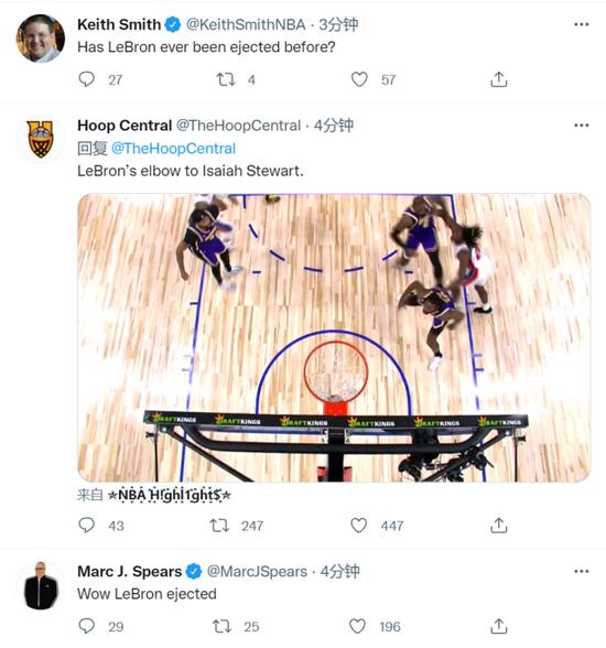 由于被驱逐在詹姆斯的职业生涯中极为罕见,因此,这也是引发热议,美媒纷纷刷屏他击打斯特尔特面部的视频表示不可思议。甚至有记者写道:“在勒布朗的职业生涯中发生过吗?”“哇哦,詹姆斯被驱逐了”。