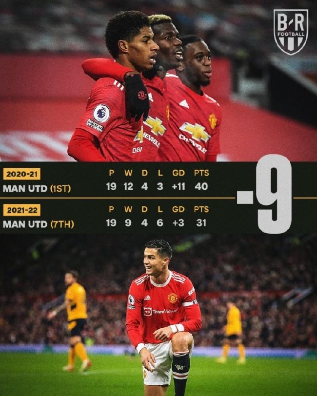 与去年踢完19场英超联赛比赛相比,曼联少了有多达9个积分。上赛季,曼联多赢了3场比赛。去年在19轮比赛踢完后,曼联力压曼城、利物浦排名联赛榜首。而本赛季,曼联与榜首的曼城已经有22分的差距。