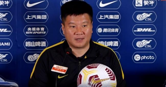 12月21日,中超第二阶段保级组第18轮,重庆两江竞技对阵武汉队,赛前武汉队主帅李金羽出席发布会。