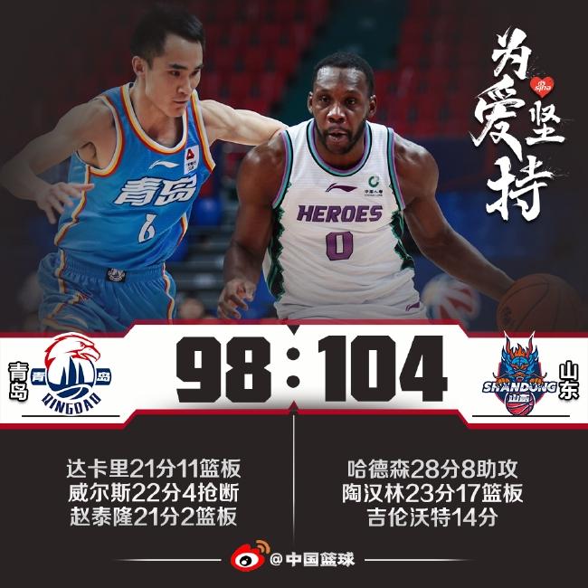 北京时间1月14日,2021-2022赛季CBA常规赛第22轮,青岛对阵山东。哈德森贡献28分8助攻,陶汉林砍下23分17篮板的两双数据,末节顶住对手反扑的山东最终以104-98力克青岛。